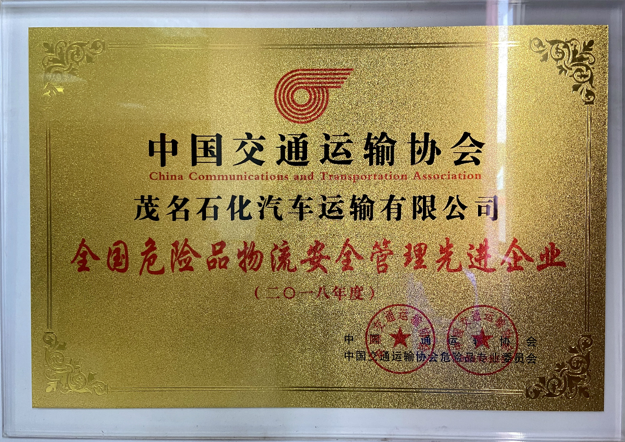 中交協(xié)危險品物流安全管理先進企業(yè)